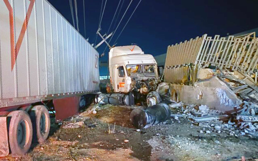 Resulta operador del tráiler lesionado al impactarse con un poste de alta tensión y en una empresa de Ramos Arizpe