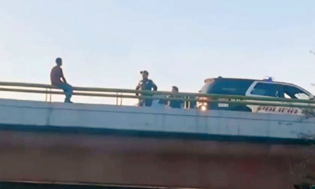 Elementos de la Unidad de Integración Familiar (UNIF) de la Policía Preventiva Municipal lograron poner a salvo a un joven que amenazaba con arrojarse de un puente vehicular.