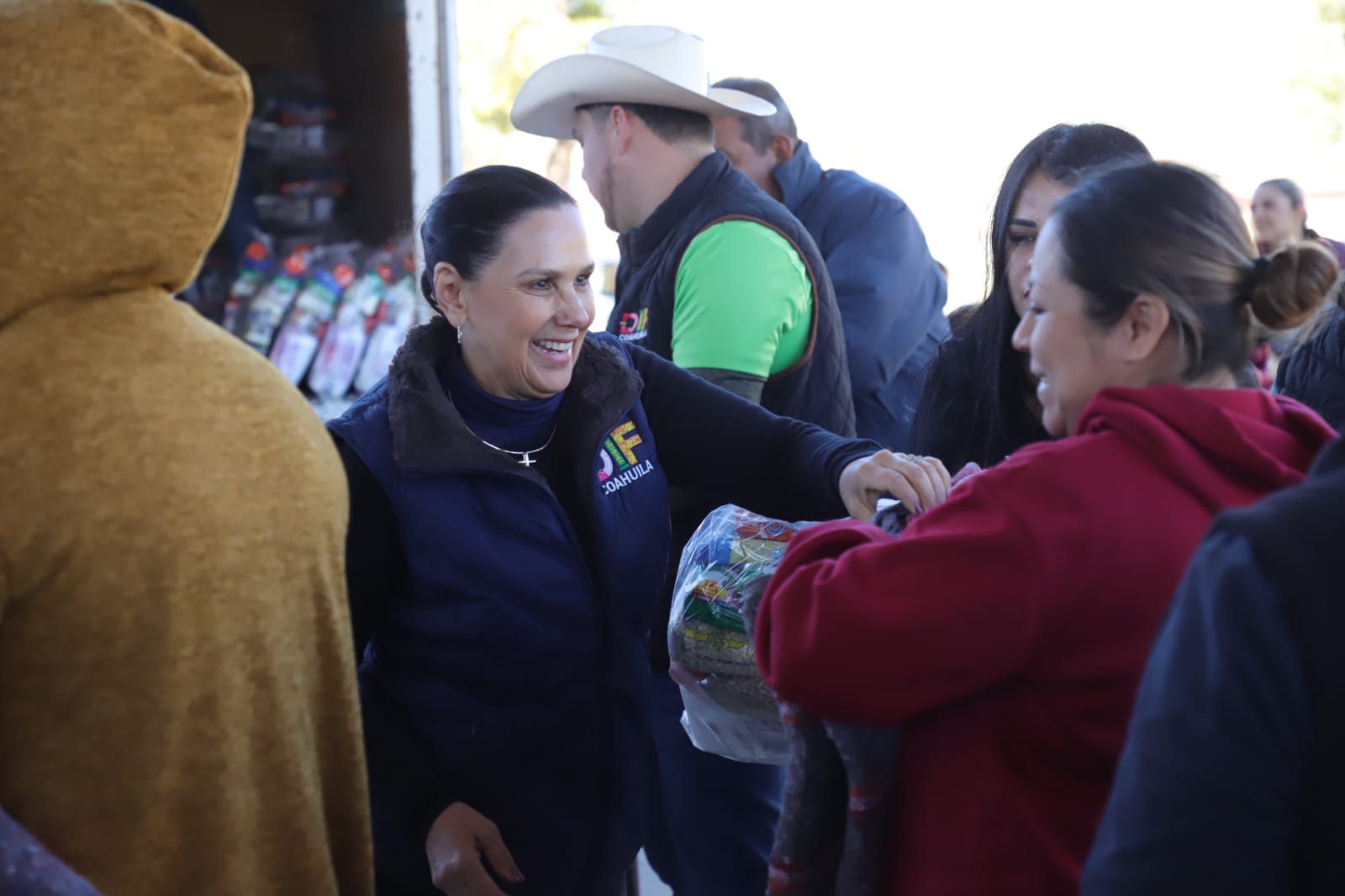 Durante su visita a la comunidad de Hércules, en el municipio de Sierra Mojada, el DIF Coahuila llevó apoyos directos a la población, beneficiando a niñas, niños, personas adultas mayores y familias en general con la entrega de juguetes, pan, chocolate caliente, despensas y cobijas, fortaleciendo la cercanía institucional y el tejido social en estas localidades.