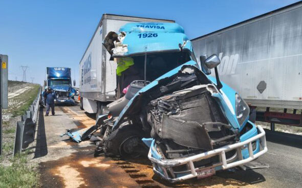 Un aparatoso choque entre tres tráileres se registró en el kilómetro 25 de la carretera libre Saltillo–Monterrey, sin que se reportaran personas lesionadas de gravedad.