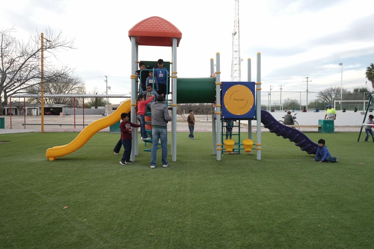 · En el ejido Los Álamos se llevó a cabo la entrega de obra de rehabilitación de la plaza pública y la cancha deportiva.