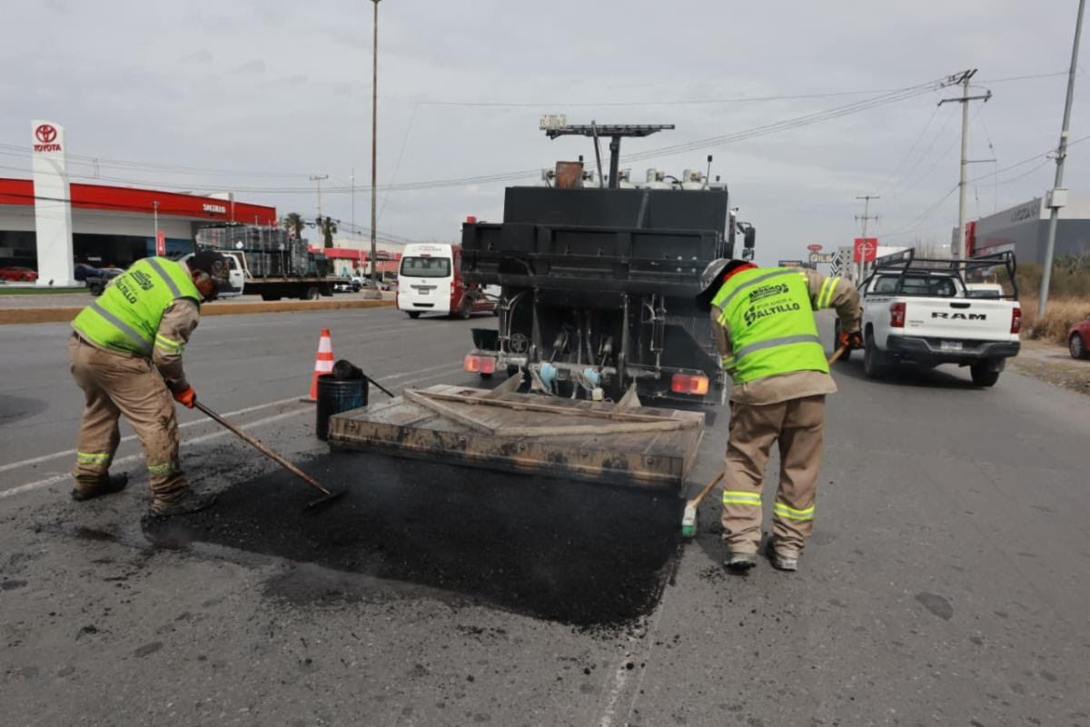 De manera simultánea, cuadrillas del Ayuntamiento de Saltillo trabajan en la rehabilitación de distintos tramos del bulevar Venustiano Carranza, localizados entre el bulevar Luis Donaldo Colosio y la carretera Los Valdez, al norte de la ciudad.