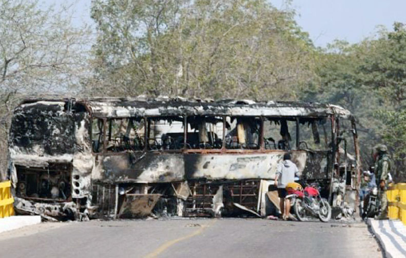 Negocios como farmacias y tiendas de conveniencia han sido presa de quemas provocadas por individuos armados, mientras en calles y carreteras se han arrojado las llamadas “ponchallantas” que son cruces metálicas con varias puntas y en muchos casos se ha despojado a automovilistas de su vehículo para prenderles fuego.