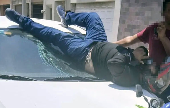 El conductor señaló que le pitó en repetidas ocasiones, pero el motociclista no lo vio hasta que ya no pudo evitar el impacto, terminando por estrellarse contra el parabrisas del automóvil y quedando sobre este.