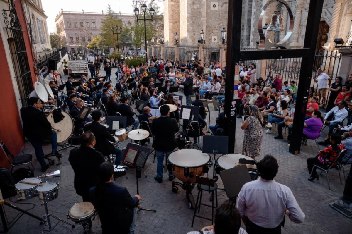 Decenas de asistentes se dieron cita en el corazón del Centro Histórico para disfrutar de un variado repertorio musical interpretado por esta reconocida agrupación, lo que generó un ambiente de convivencia familiar e incluso motivó a algunos presentes a bailar al ritmo de la música.
