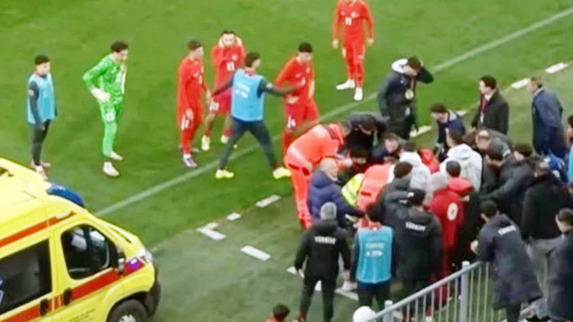 GRABAN EL MOMENTO EN QUE ENTRENADOR DE TURQUÍA HACE CORAJE Y SE DESPLOMA EN PLENO JUEGO DE FÚTBOL