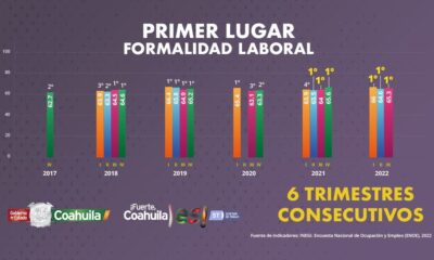 Coahuila continúa como líder nacional en formalidad laboral, con el 65.3 por ciento de los trabajadores coahuilenses trabajando en un empleo formal que le asegura las...