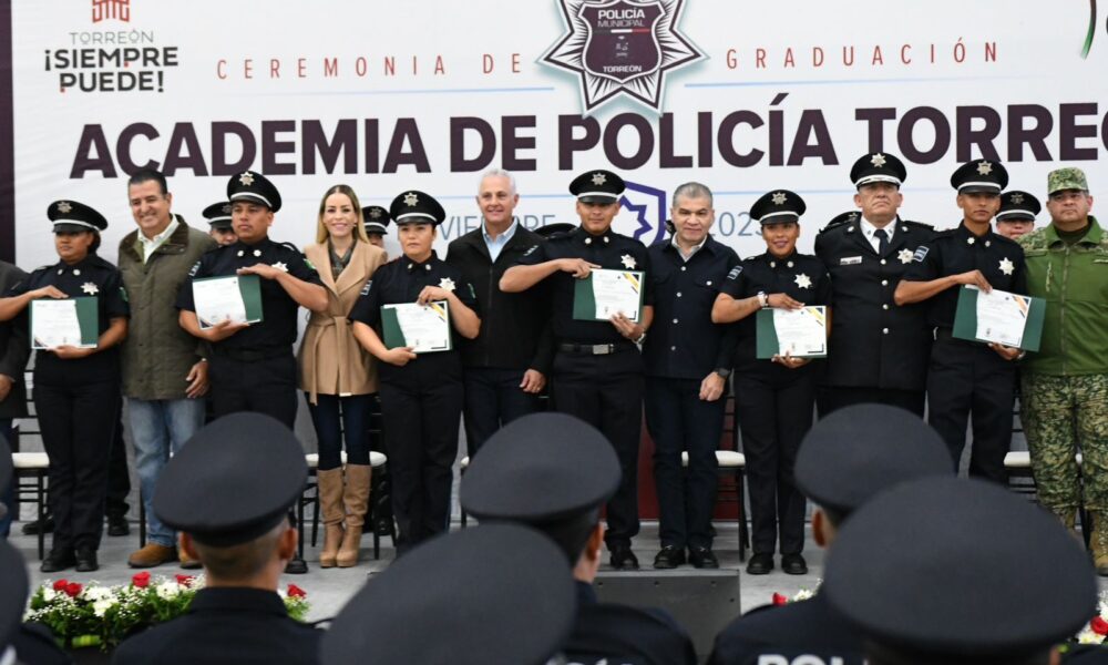 Acompaña al gobernador Miguel Riquelme a Román Cepeda en la graduación de 87 cadetes de la Academia de Policía de Torreón. Torreón, Coahuila de Zaragoza; a...