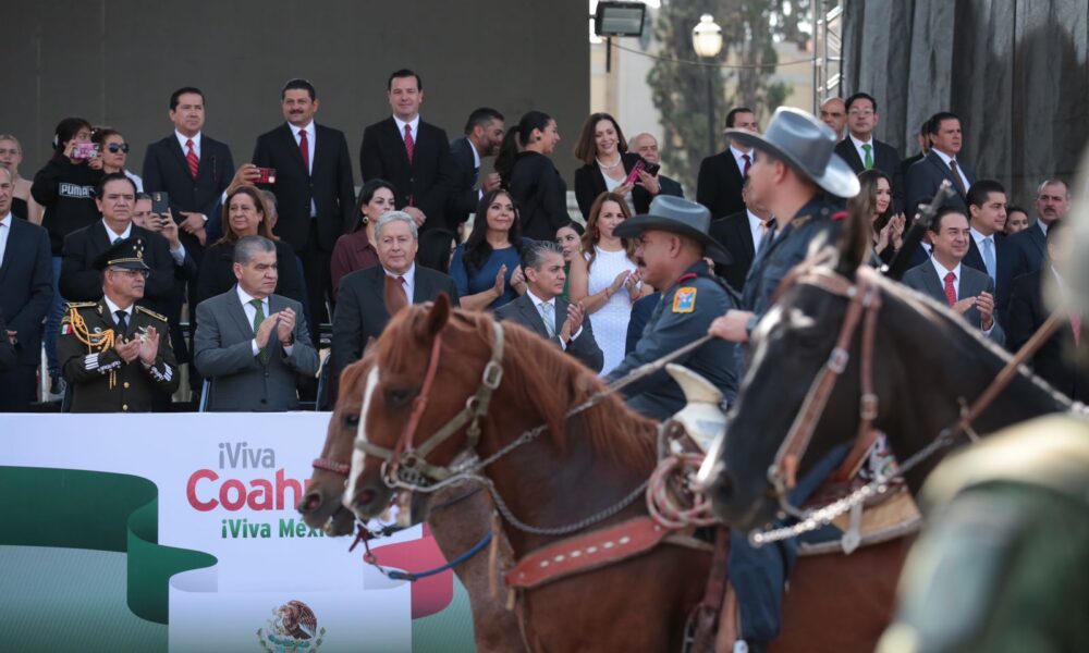 Saltillo, Coahuila de Zaragoza; a 16 de Septiembre de 2023.- Junto a los titulares de los Poderes Legislativo y Judicial del Estado, el diputado Eduardo Olmos...