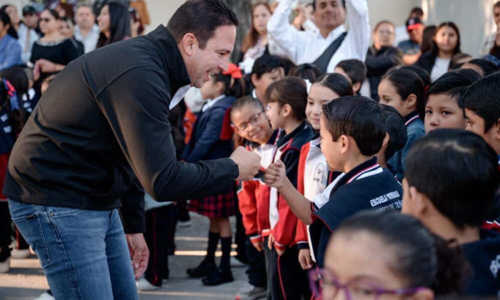 Cerca de 800 alumnos de la Escuela Primaria Isidro López Zertuche se beneficiaron con la entrega de una techumbre, así como de equipo deportivo, mesas y bancos,...