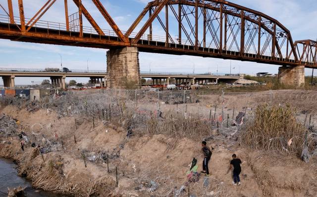 La valla de alambre de púas fue instalada en propiedades privadas a lo largo del río Grande por la Guardia Nacional de Texas dentro de la...
