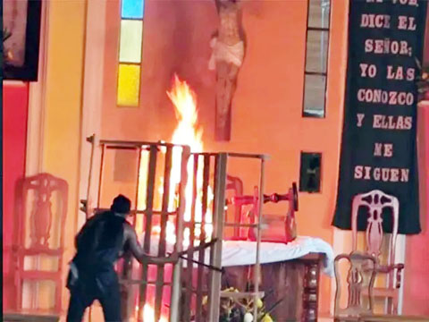 Auxiliares de la iglesia intentaron detenerlo, en tanto tres mujeres de la tercera edad sufrieron crisis nerviosa. Un hombre presuntamente bajo los efectos de estupefacientes irrumpió...