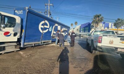 El hundimiento, provocado por una fuga de agua reportada y no atendida en la colonia Industrial Un camión de reparto terminó inmovilizado luego de quedar atrapado...