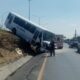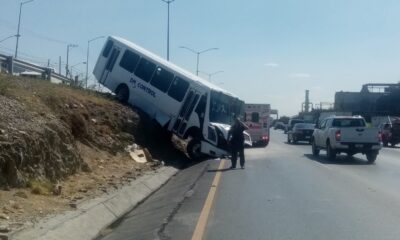 El conductor de un transporte de personal, sufrió un aparatoso accidente donde casi quedó volcado, luego que un trailer que al cambiarse de carril lo impactó...