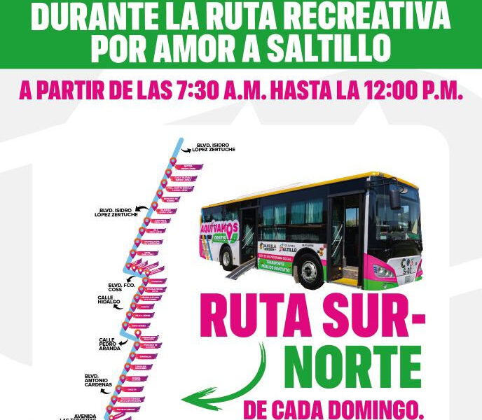 Informa Municipio el recorrido en las rutas sur-norte y norte-sur Saltillo, Coahuila de Zaragoza; 3 de octubre de 2025.- El Gobierno Municipal de Saltillo informa sobre...