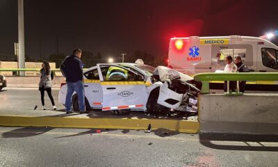 El conductor de un taxi Nissan Versa protagonizó un fuerte accidente esta noche, cuando se desplazaba de poniente a oriente sobre el distribuidor vial El Sarape,...