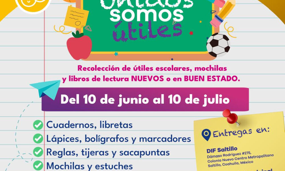 Invitan a la población a donar útiles escolares Saltillo, Coahuila de Zaragoza; 10 de junio de 2025.- El DIF Saltillo arrancó la campaña Unidos Somos Útiles,...