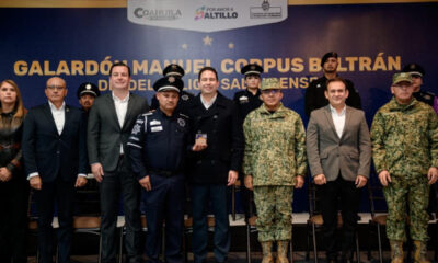 Alcalde de la ciudad entrega el Galardón Manuel Corpus Beltrán al Mérito Policial en el marco del Día del Policía Saltillense Saltillo, Coahuila de Zaragoza; 19...